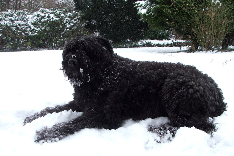 Da macht es richtig Spaß, zweimal am Tag mit dem Hund raus zu müssen. Am schönsten ist es morgens, wenn die Landschaft noch so unberührt aussieht. Giovanni hat auch besonderen Spaß an den Spaziergängen. Die Nase ist nur auf dem Boden. Die Gerüche müssen viel intensiver sein und man sieht die markierten Stellen jetzt ja auch. Entsprechend sieht sein Bart nach einem Spaziergang auch aus. Aber auch die Pfoten sind voller Eiskugeln. Zwischendurch legt er sich dann schon mal hin und versucht die Kugeln abzubeissen. Da hilft nach dem Spaziergang nur ein Eimer mit warmen Wasser. Damit werden nicht nur die Kugeln aufgetaut. Auch das Salz und Granulat wird aus seinen Pfoten gewaschen.