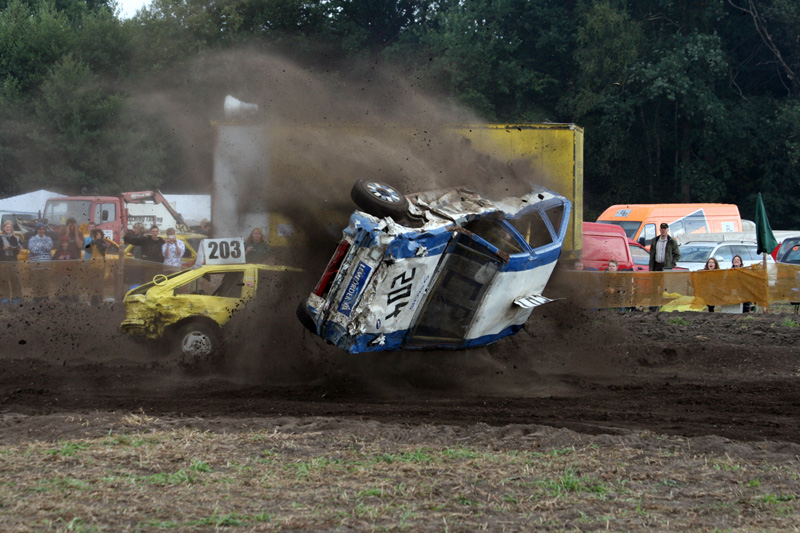 Das Bild der Woche kommt diesmal vom Motorsport. Am vergangenen Wochenende fand in Destel ein Stock-Car-Rennen statt. Dabei wurden alte Erinnerungen an die aktive Zeit geweckt. Im Gegensatz zu den meisten anderen Sportarten geht es hier nicht um Schnelligkeit. Vielmehr gibt es Punkte für eine gefahrene Runde, einen Dreher oder einen Überschlag, den man verursacht hat. Da war die Action natürlich vorprogrammiert.