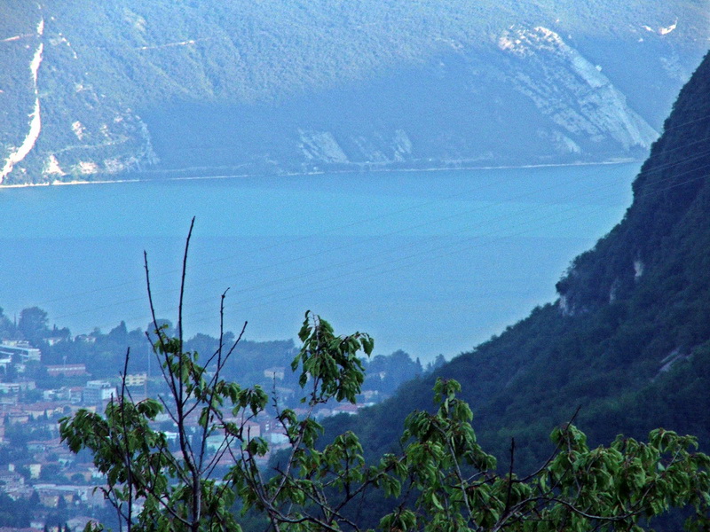 Über Asphalt ging es nun hinunter nach Ponte Arche und noch einmal hinauf auf den Passo di Ballino. Dort begann dann die letzte Abfahrt nach Riva des Garda. Auf den kurvenreichen Straßen hieß es nur auf den Verkehr achten und auf den letzten Metern nicht noch stürzen. Und dann der erste Blick auf den Gardasee: Anhalten, Foto machen und Ulrike anrufen. Gleich sind wir da!