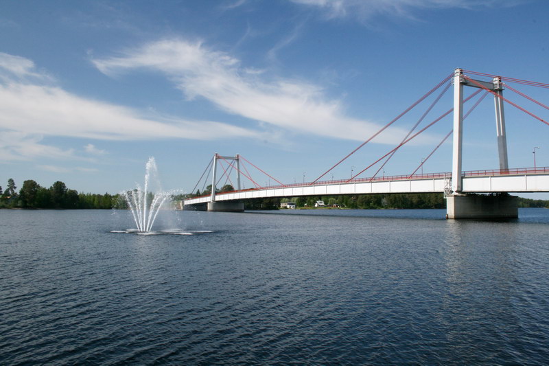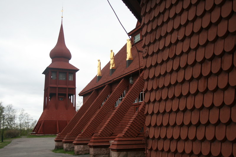 Wir parkten unser Wohnmobil in der Innenstadt von Kiruna. Da es Sonntag war, hatten die Geschäfte geschlossen. Nur in den Randbezirken hatten einige Supermärkte geöffnet. Dafür sah man aber von der Stadt aus auf das Erzbergwerk. Dort wurde auch am Sonntag gearbeitet. Jedenfalls staubte es bei der Aufbereitung ganz kräftig und auf den Bahngleisen herrschte reger Zugverkehr. Wir bummelten etwas durch die Stadt und zur Kirche, der schönsten Holzkirche, die ich jemals gesehen habe. Sowohl innen, als auch von außen eine Augenweide. Das Kirchengebäude erinnert an eine Lappenbehausung. Der nebenstehende Kirchturm ist fast zwiebelförmig. Es gibt in Kiruna aber noch andere Hingucker, wie den Turm des Rathauses oder diverse Plastiken, Kunstwerke und Denkmäler. Ich hatte den Eindruck, die Erzgesellschaft möchte die Bürger der Stadt etwas für die Unannehmlichkeiten entschädigen. Übrigens wurde die Kirche 1912 auch von der Bergwerksgesellschaft bezahlt.