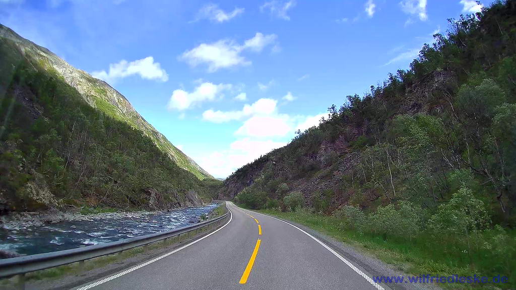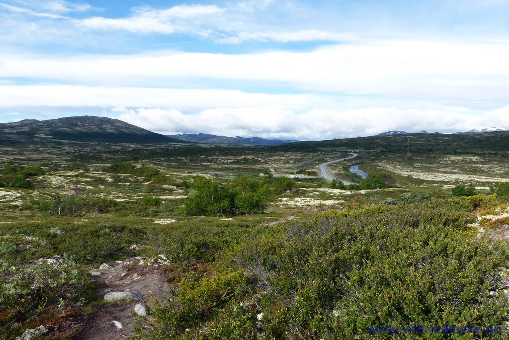 Nach dem Frühstück folgten wir der E6 bis nach Trondheim. Der Himmel war zunächst wieder blau und so geriet die Fahrt durch das Drivdalen zum Vergnügen. Eine wunderbare Landschaft und wenig Verkehr ließen die Laune ansteigen.