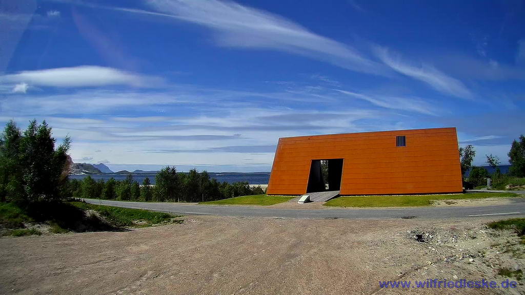 Gegen Mittag machte ich noch ein Foto von dem Sanitärgebäude und dann fuhren wir aber weiter. Schließlich wollten wir heute auf die Lofoten. Es wäre großartig, wenn das Wetter so bliebe! (Bild 25)
