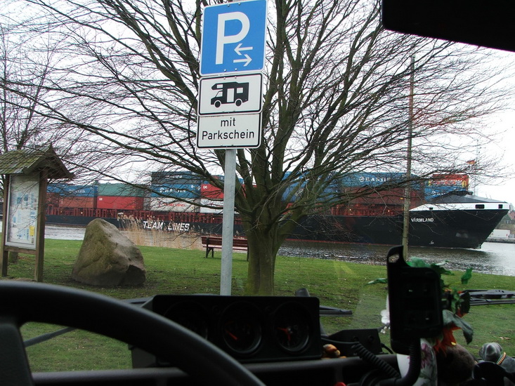 Wir setzen mit der Fähre über die Weser und fuhren nach Oldenburg. Auf einem Stellplatz am Küstenkanal beendeten wir unsere Kanaltour. So haben wir jeden Tag Schiffe gesehen!