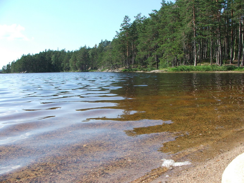 Der Tiveden Nationalpark ist eines der wildesten Waldgebiete Südschwedens. Stark hügeliges, mit vielen Felsbrocken übersätes Gelände. Inmitten dieser urwaldartigen Landschaft liegt Vitsand (weißer Sand), ein traumhafter Badeplatz am Trehörningen- See. Als wir ankamen war es Sonntagmittag und wir waren nicht die einzigen, die hier baden wollten. Aber wir hatten ja Zeit und beschlossen erst mal eine Runde durch den Wald zu wandern. Die Runde dauerte über vier Stunden und wir fanden dabei einen kleinen Badeplatz, der Vitsand noch einmal toppte. Es wäre doch gelacht, wenn ich in Schweden nicht baden ginge! Nur Giovanni wollte nicht mit mir zusammen ins Wasser. Er hatte wohl Angst, dass ich seinen Stock wegschnappte.