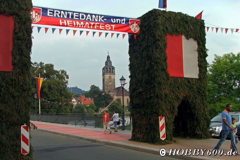 Bei 35°C im Schatten fuhren wir über die A44 bis Kassel. Erstes Übernachtungsziel war Bad Sooden- Allendorf. Hier hatten wir 2011 unser Frühlingstreffen. Aber diesmal war der Stellplatz belegt: Erntedank- und Heimatfest. Allendorf war schön geschmückt und gut besucht.