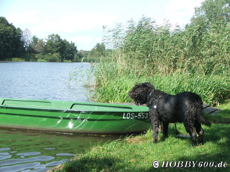 Aus dem Forum hatten wir wieder den Hinweis auf Kamminke am Stettiner Haff bekommen. Hier kann man auf einem Parkplatz unmittelbar am Wasser stehen. Wir fanden sogar noch einen Stellplatz in der ersten Reihe und konnten unmittelbar auf das Wasser schauen. Die Hunderunde entwickelte sich zwangsläufig zu einer Wasserrunde. Immer wieder Stöckchen suchen und ins Wasser werfen. Giovanni hatte seinen Spaß.