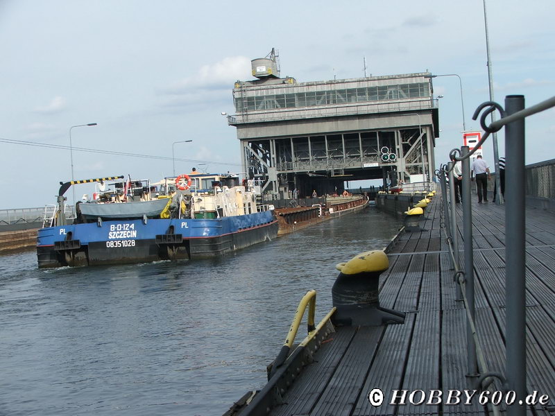 Das Bauwerk ist ein Paradebeispiel der Ingenieurbaukunst in Deutschland und begeistert jeden „Techniker“. Zunächst informierten wir uns im Besucherzentrum über die Bedeutung der Binnenschifffahrt im Allgemeinen und das Bauwerk im Speziellen. Anschließend benutzen wir den Serpetinenweg um uns das Bauwerk von oben anzuschauen. Wir hatten Glück und konnten das „Senken“ eines modernen Schubverbandes beobachten. Da der Trog für den Verband zu klein war, musste der Schubverband geteilt und einzeln abgesenkt werden.