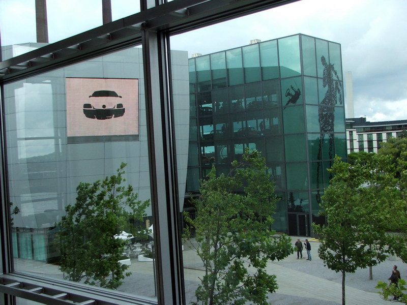 Wir erfuhren auch etwas über den Konzern und die verschiedenen Werke in aller Welt. So wurde unser Polo in Pamplona/Spanien gebaut und dann mit dem Schiff nach Emden transportiert. Von dort kam er mit dem Zug, gemeinsam mit dem Scirocco aus Portugal, dem Fox aus Brasilien, dem New Beatle aus Mexiko und dem Passat aus Emden nach Wolfburg. Hier wurden die Fahrzeuge gereinigt und die Übergabeinspektion durchgeführt. Dann kamen sie über eine überdachte Brücke in einen der beiden Glastürme. Dort stehen die Wagen maximal drei Tage. Dann werden sie ins Kundencenter gefahren und an den Kunden übergeben.