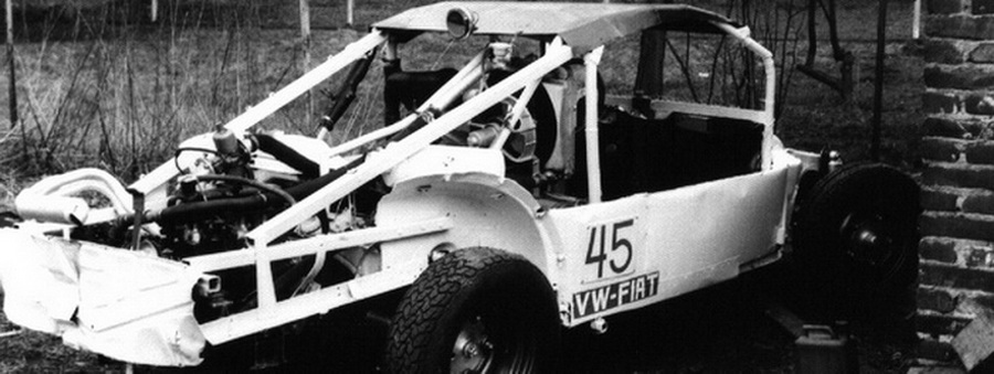 Ich entschloß mich deshalb im Jahre 1975 an diesem Sport teilzunehmen. Ich besorgte mir einen alten VW- Käfer, trennte ihn von allem überflüssigen Blechteilen. Dazu gehörte auch das Dach. An seiner Stelle kam ein Überrollkäfig. Das ganze Fahrzeug wurde flacher und breiter. Ein Buggy halt.